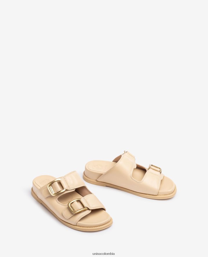 co Unisa mujer sandalia plana con doble hebilla beige F0X80H320